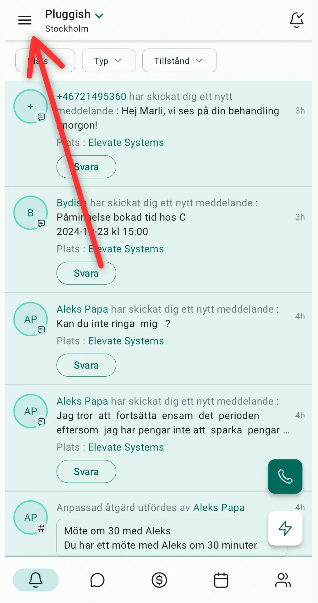 Hur? Tryck längst upp till vänster på "Chattbubblan" som syns på bilden nedanför också.