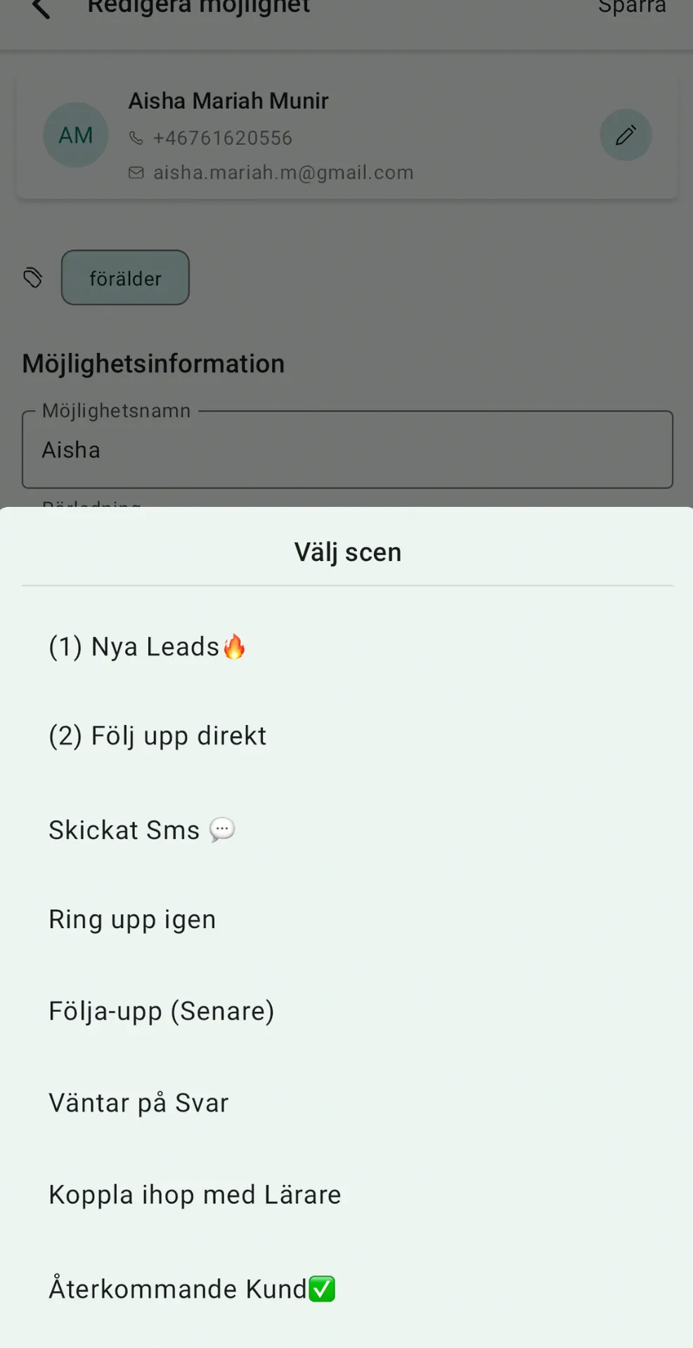 Följa upp (senare): Ifall de vill att vi hör av oss om ett par månader för någon anledning. Skriv då i det i anteckningar så man vet.