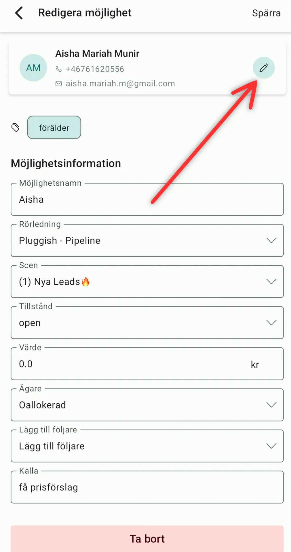 4. Varje Lead tar dig hit. Tryck på "pennan".
