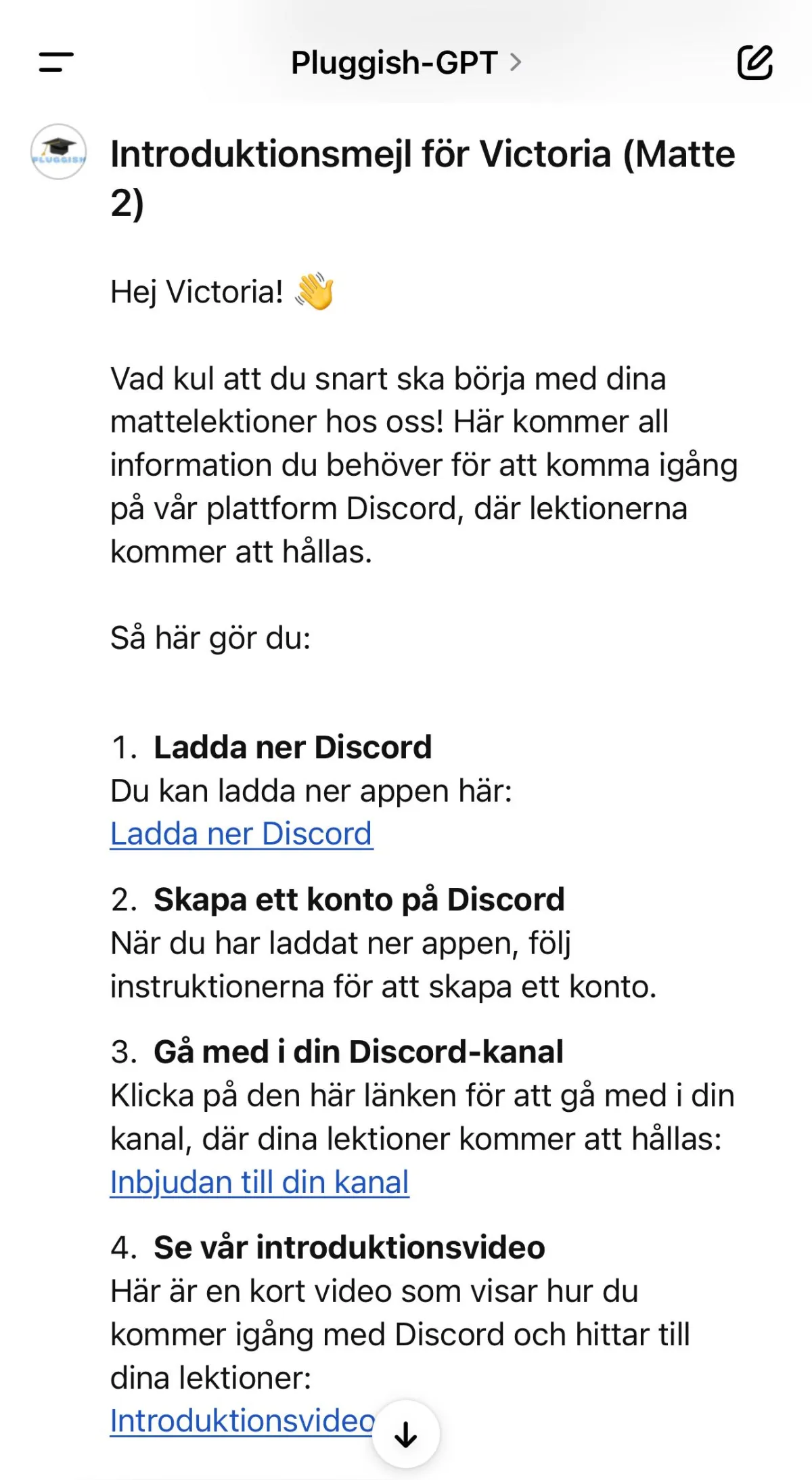 Viktigt: Be eleverna ladda ner Discord-appen på mobilen. De kommer behöva appen för att skicka in bilder på sina uppgifter. Gå också igenom kanalerna med dem under första lektionen så de förstår hur allt fungerar.