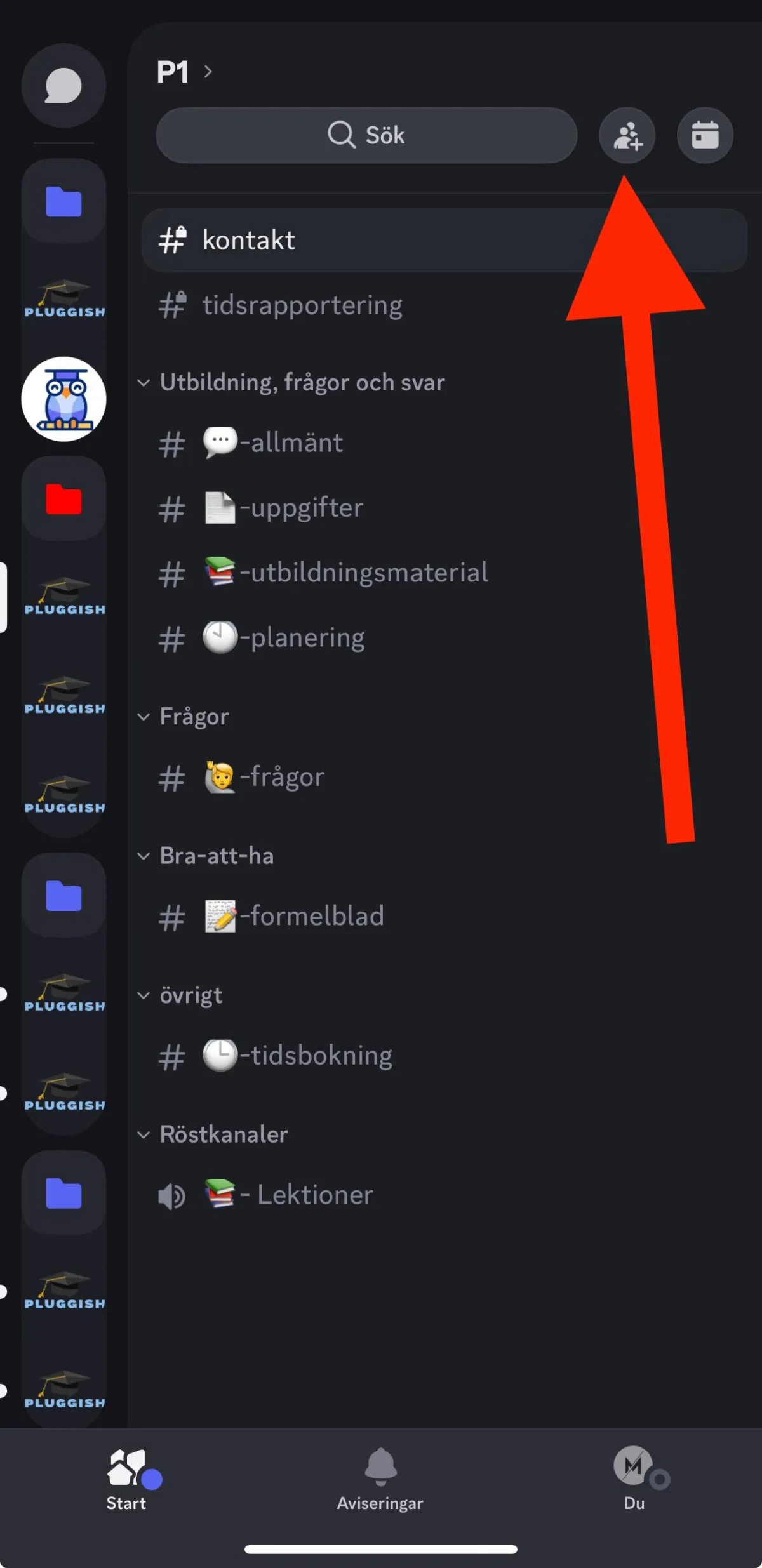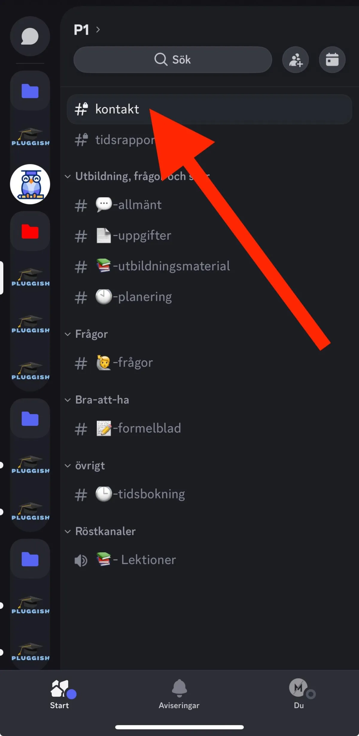 PS: Kanalen med ugglan ovanpå är lärarnas gemensamma kanal i Discord.
