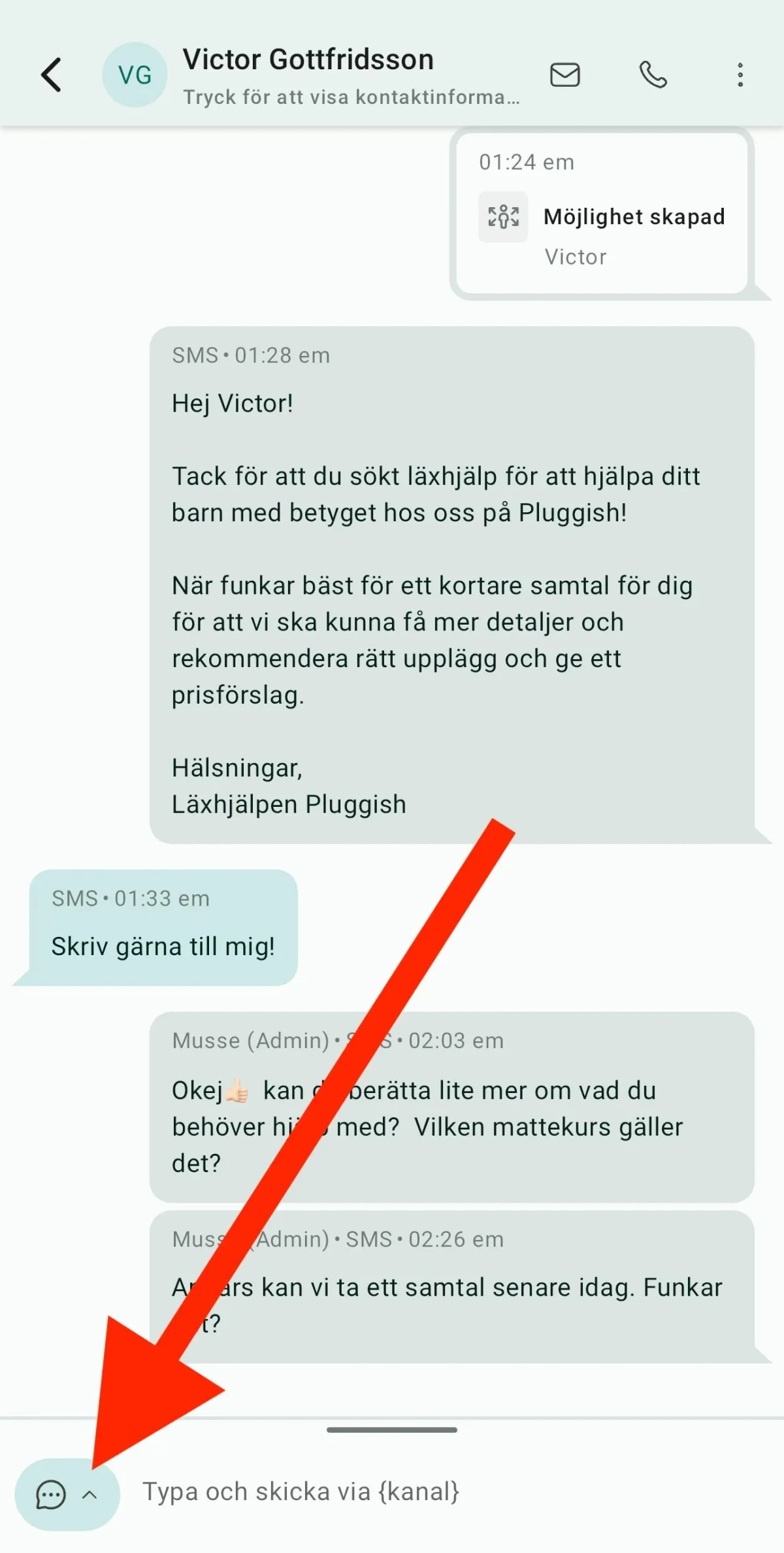 I nuvarande infon finns redan en förinställd anteckning med det de har fyllt i formuläret, samt frågor som du vill ha besvarade i erat samtal. Ställ de på ett naturligt sätt och ha ett samtal.